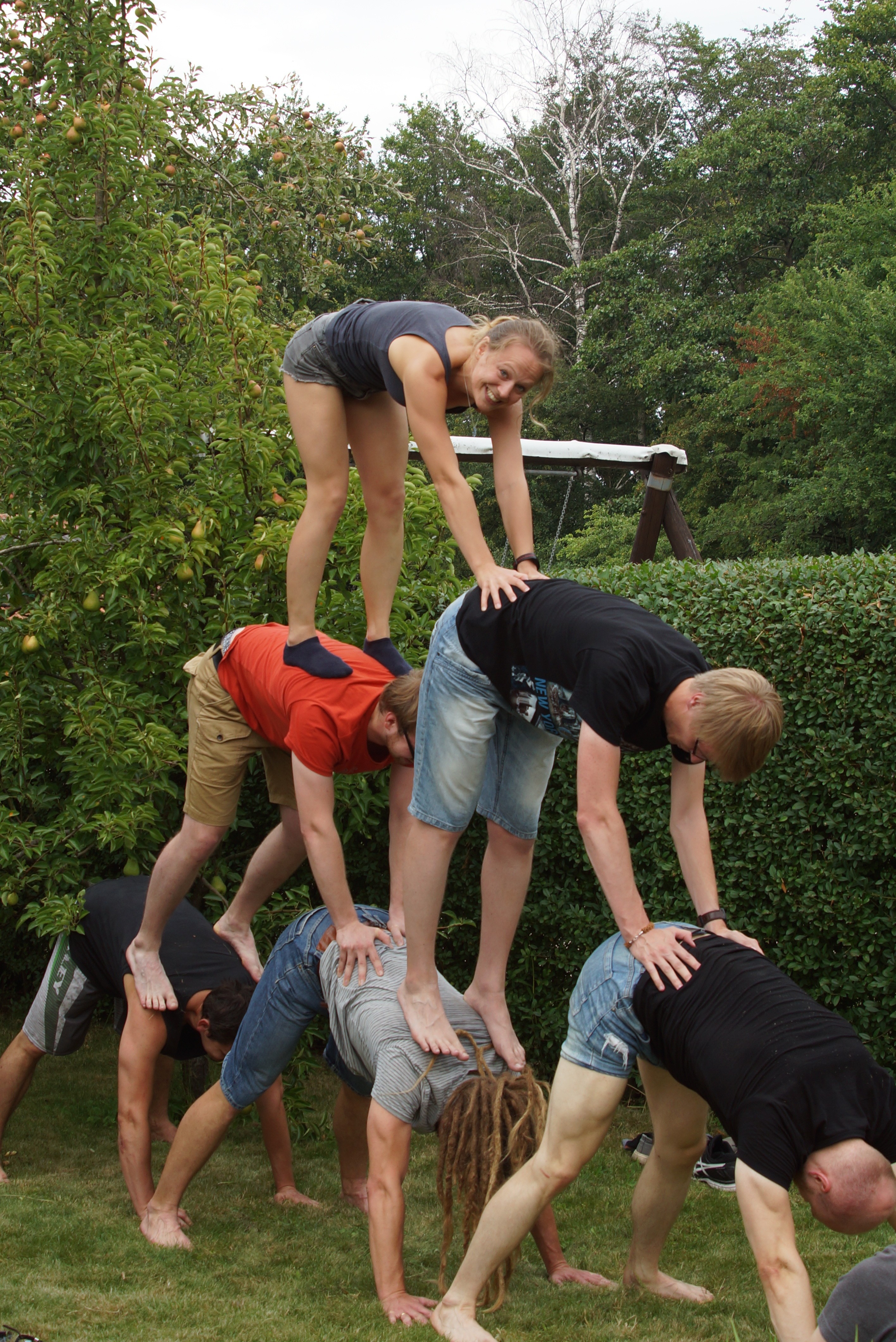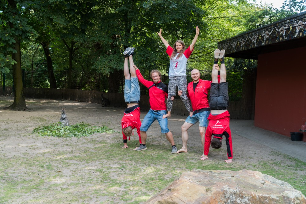 Am 28.07.2019 fand bei strahlendem Sonnenschein unser alljährliches Sommerfest statt. So haben wir uns traditionell im Allwetterzoo Münster getroffen, um unser Patenkänguru „Kicky“ einen Besuch abzustatten. In Begleitung eines Reporters Der Westfälischen Nachrichten haben wir unserem Maskottchen ein paar akrobatische Einlagen geboten. Dabei war äußerste Vorsicht geboten, um das kleine Känguru nicht zu verscheuchen. Großer Dank gilt auch in diesem Jahr dem Allwetterzoo und Tierpfleger Ralf Nacke für die Möglichkeit, im Känguru-Gehege Akros zu performen.